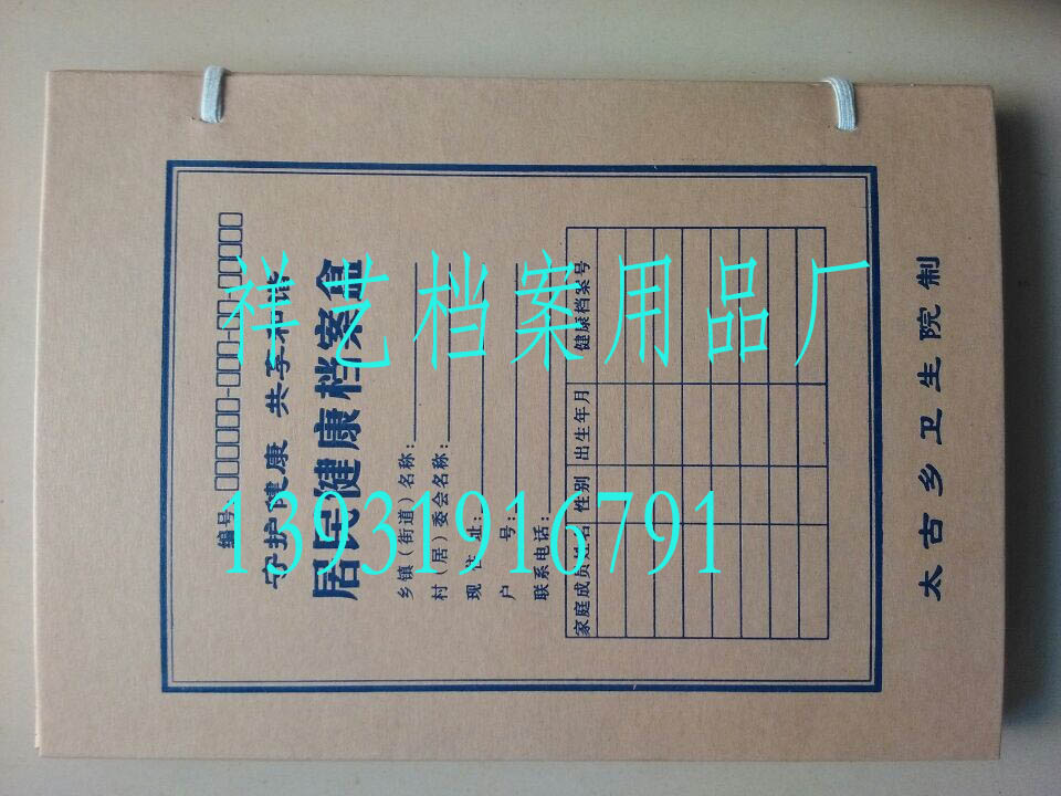 祥艺档案用品厂专业订做国标无酸纸档案盒,山西省健康档案是祥艺档案用品厂特供产品。价格低廉,质量有保证,零押金,货到付款。可开专用增值票,普通国税局发票,收据。